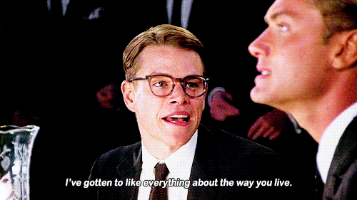 I’ve watched the talented Mr. Ripley about a million and a half times in the past almost twenty years since it came out in 1999 (I added this last part of information just to make you feel old). The story never changes but it’s an incredible one. Man from lower middle class (Tom Ripley played by Matt Damon) falls in love with the lifestyle of a young, stylish, having-it-all, rich man (Dickie Greenleaf played by Jude Law) who seems to have everything. They go on a magical journey together until Tom can’t take it anymore and (spoiler! – although I won’t tell you how, in case in the last twenty years you haven’t had a chance to watch the movie yet, if not, you really should though) Tom becomes Dickie.